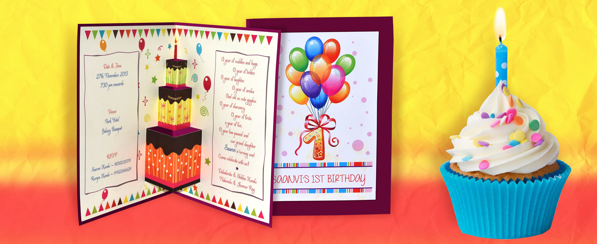 Kundu family of Salt Lake Kolkata happily invited their guests on the occasion of their youngest member's first birthday with a card that speak the language of fun. We designed a birthday cake pop-up on opening to make it different from a standard folded card.
